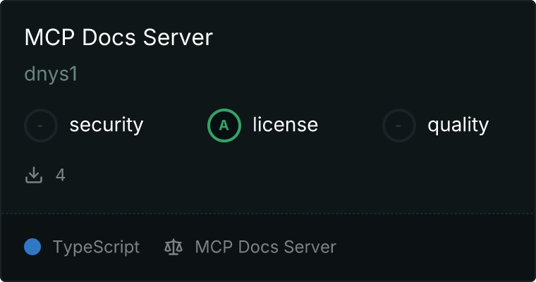 curl -X GET 'https://glama.ai/api/mcp/v1/servers/dnys1/mcp-docs'