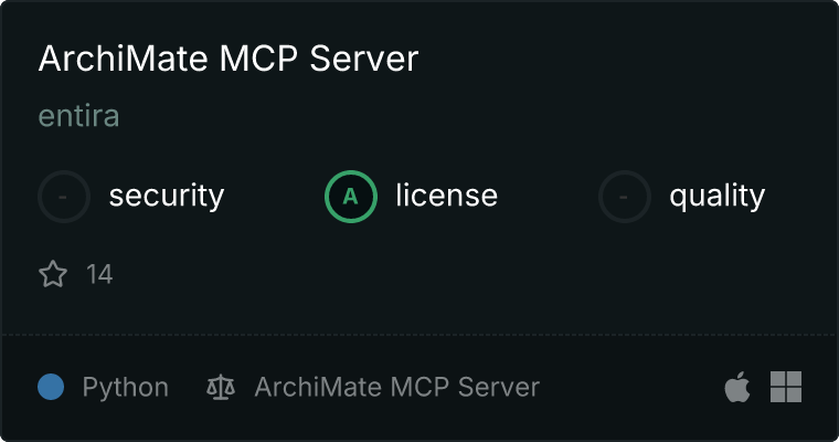 curl -X GET 'https://glama.ai/api/mcp/v1/servers/entira/archi-mcp'