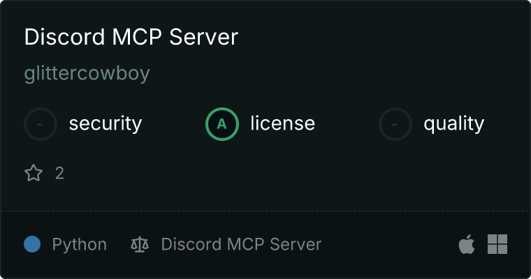 curl -X GET 'https://glama.ai/api/mcp/v1/servers/glittercowboy/discord-mcp'
