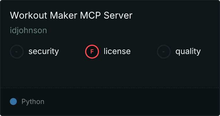 curl -X GET 'https://glama.ai/api/mcp/v1/servers/idjohnson/workoutMakerMCP'