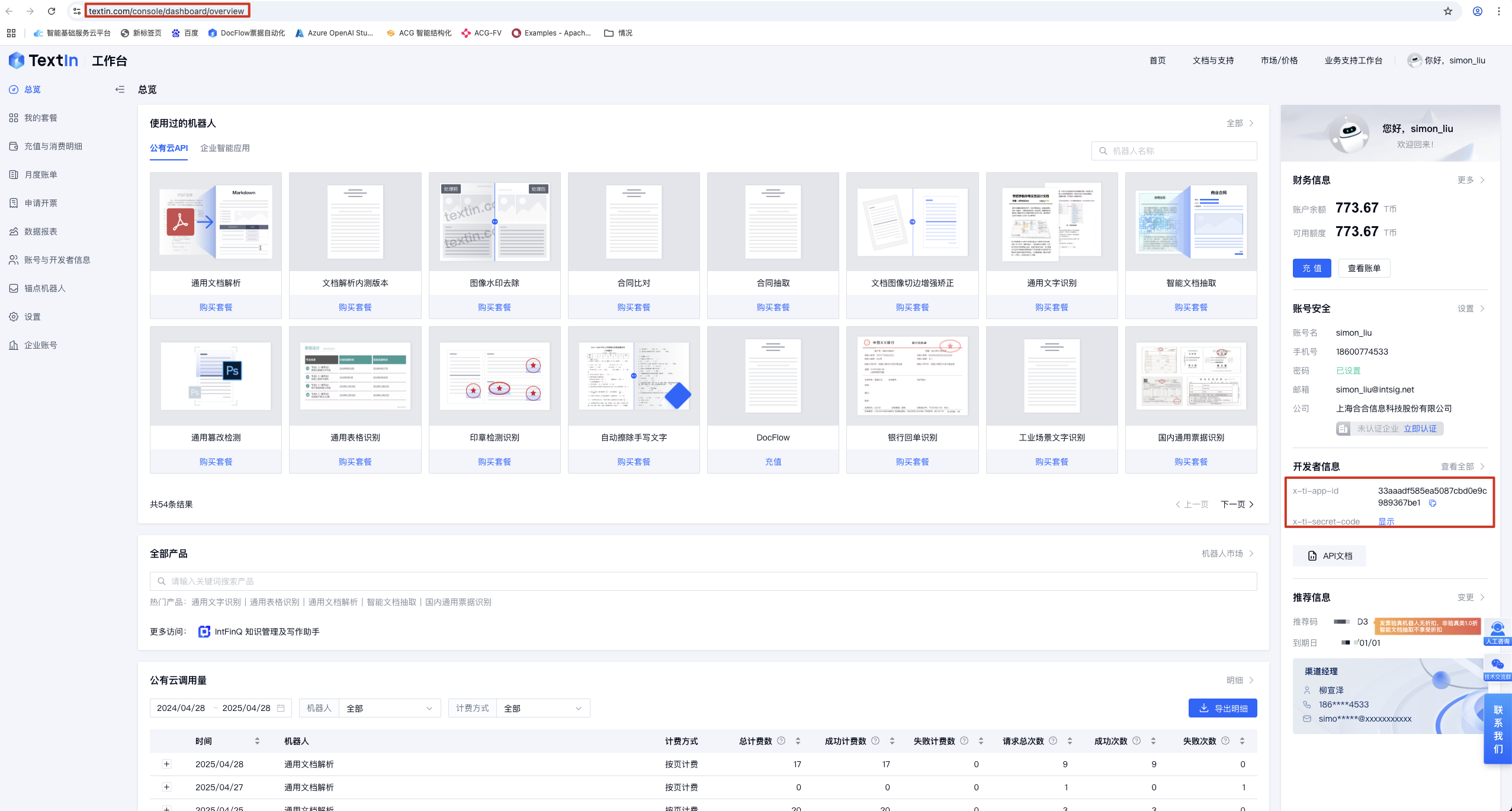 前往[TextIn OCR注册链接](https://www.textin.com/register/code/68KPRK),登录注册后获取 APP_ID 和 APP_SECRET。目前 MCP 服务已支持添到智能体和工作流中。