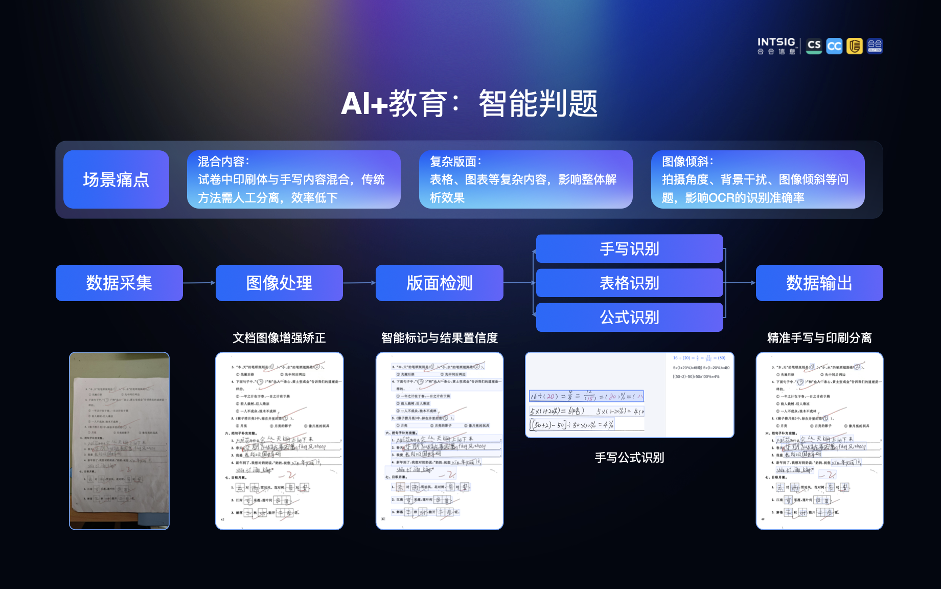 - 识别学生答题内容,提取并结构化,支持自动评分与结果分析。