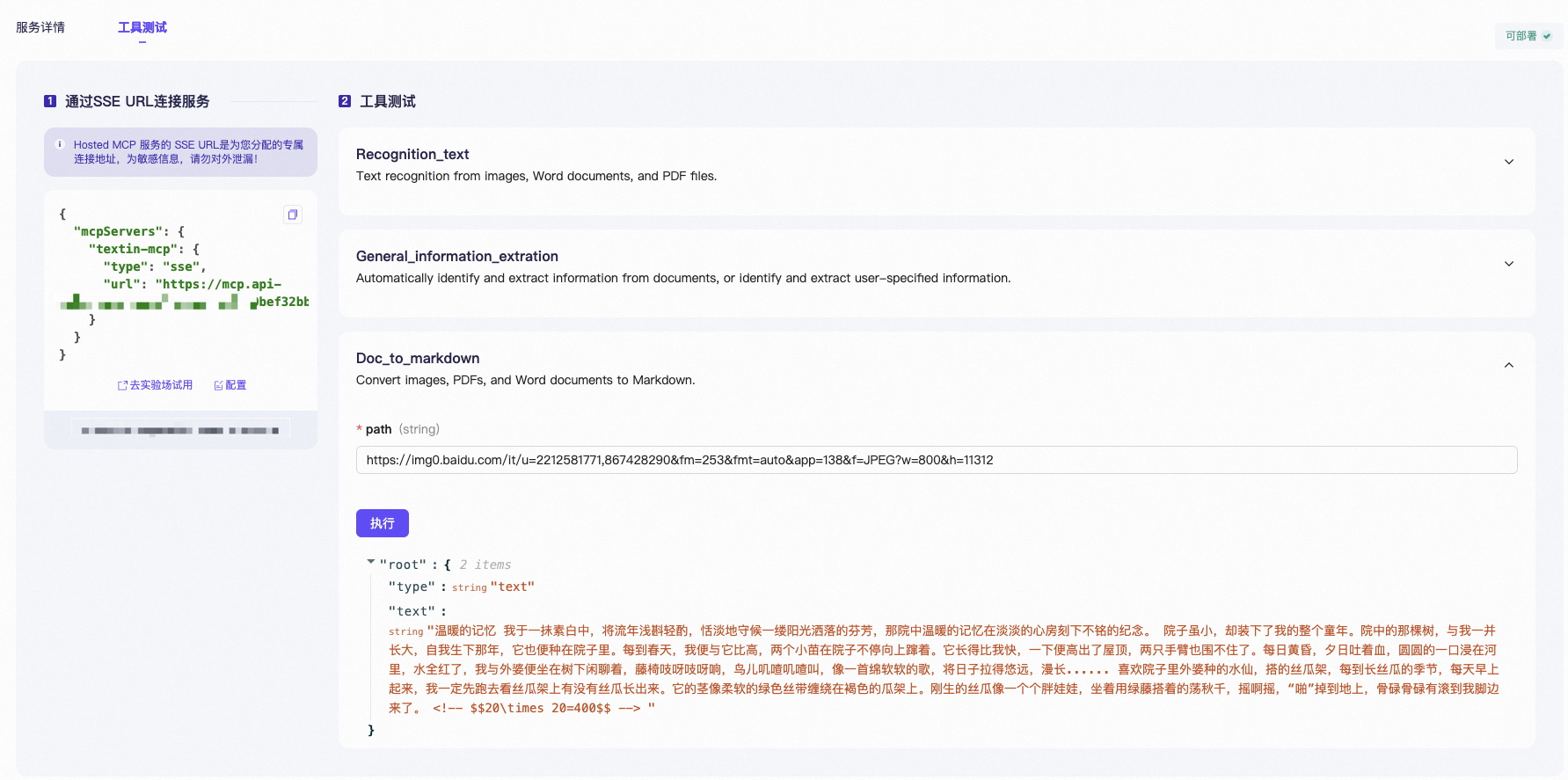 已为您部署好了云端的[TextIn OCR](https://www.textin.com/register/code/68KPRK)服务,您需要前往[TextIn OCR注册链接](https://www.textin.com/register/code/68KPRK),登录注册后获取 APP_ID 和 APP_SECRET。目前 MCP 服务已支持添到智能体和工作流中。