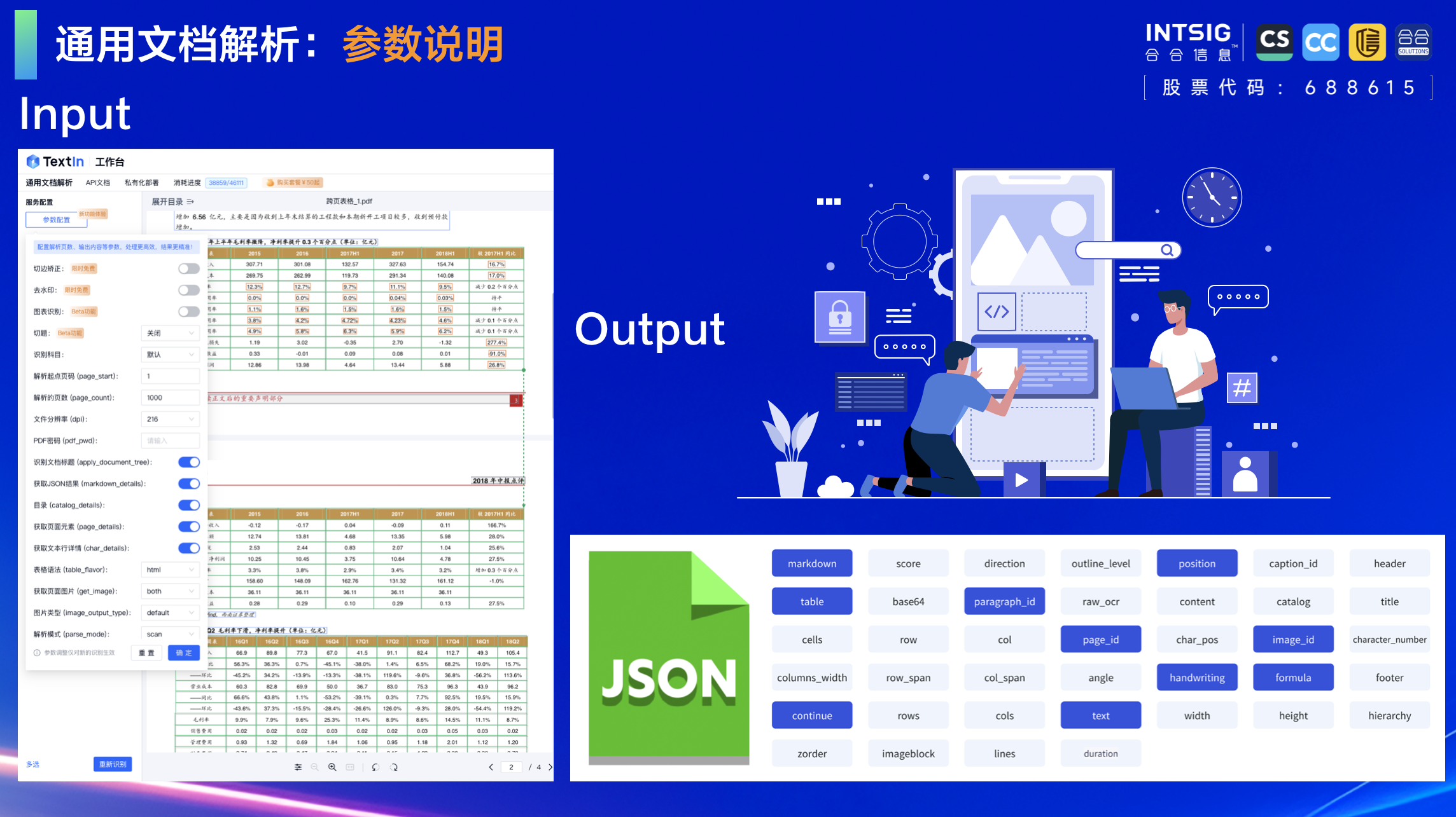 - 快速提取和标准化财报、研报等金融文档中的关键数据,助力数据分析与决策支持。