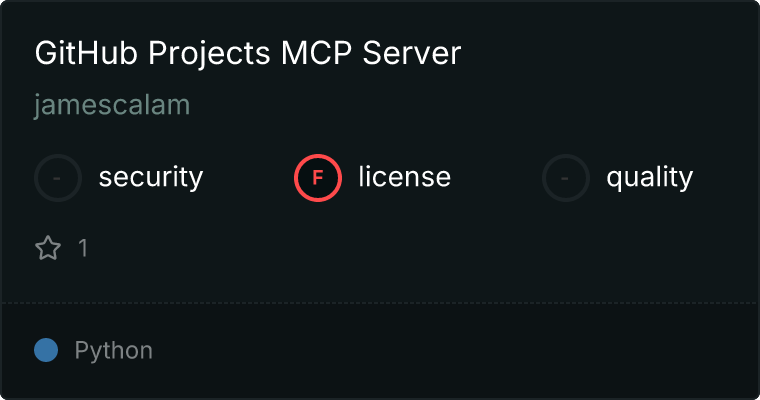 curl -X GET 'https://glama.ai/api/mcp/v1/servers/jamescalam/github-projects-mcp'