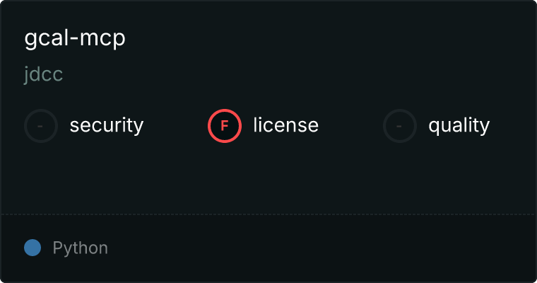 curl -X GET 'https://glama.ai/api/mcp/v1/servers/jdcc/gcal-mcp'