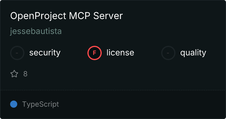 curl -X GET 'https://glama.ai/api/mcp/v1/servers/jessebautista/mcp-openproject-smithery'