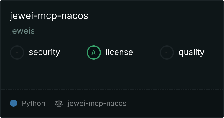 curl -X GET 'https://glama.ai/api/mcp/v1/servers/jeweis/jewei-mcp-nacos'