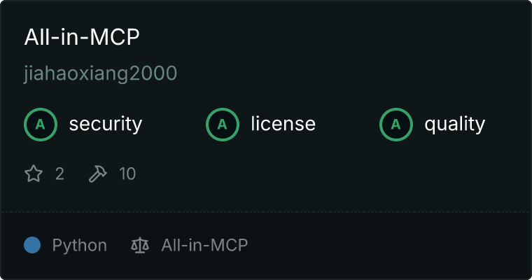 Our directory badge helps users to quickly assess server capabilities, safety, and instructions for installing the server.