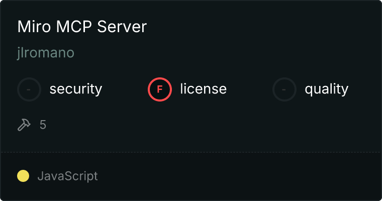 curl -X GET 'https://glama.ai/api/mcp/v1/servers/jlromano/miro-mcp'