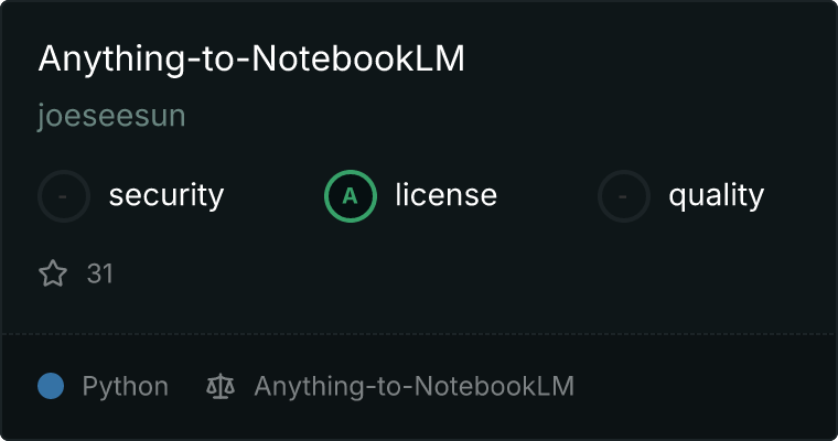 curl -X GET 'https://glama.ai/api/mcp/v1/servers/joeseesun/anything-to-notebooklm'
