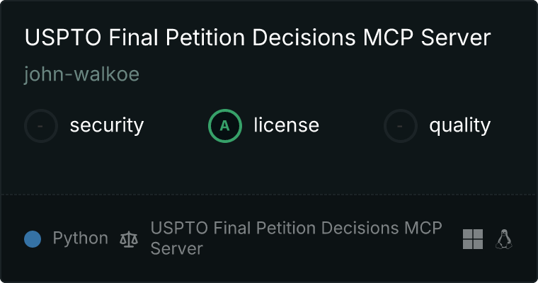 curl -X GET 'https://glama.ai/api/mcp/v1/servers/john-walkoe/uspto_fpd_mcp'