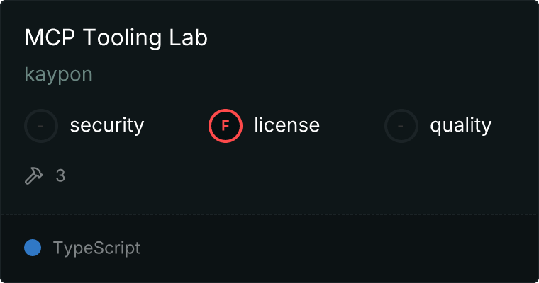curl -X GET 'https://glama.ai/api/mcp/v1/servers/kaypon/mcp-tooling-lab'