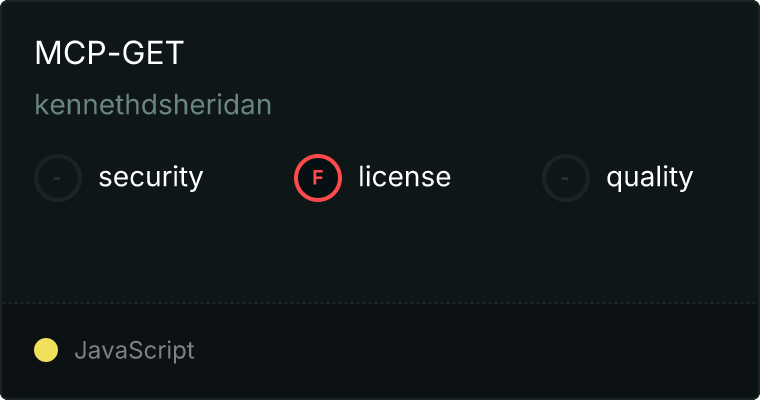 curl -X GET 'https://glama.ai/api/mcp/v1/servers/kennethdsheridan/mcp-get'