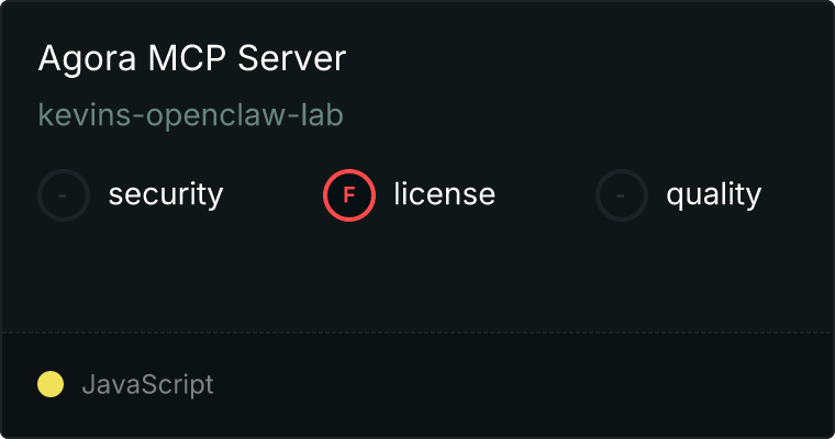 curl -X GET 'https://glama.ai/api/mcp/v1/servers/kevins-openclaw-lab/agora-mcp'