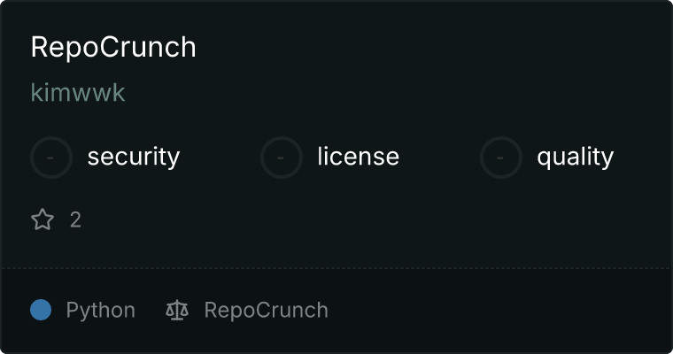 curl -X GET 'https://glama.ai/api/mcp/v1/servers/kimwwk/repo-crunch'