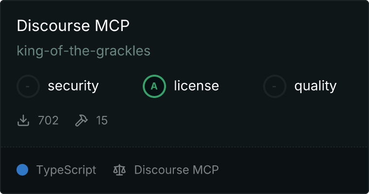 curl -X GET 'https://glama.ai/api/mcp/v1/servers/king-of-the-grackles/discourse-mcp'