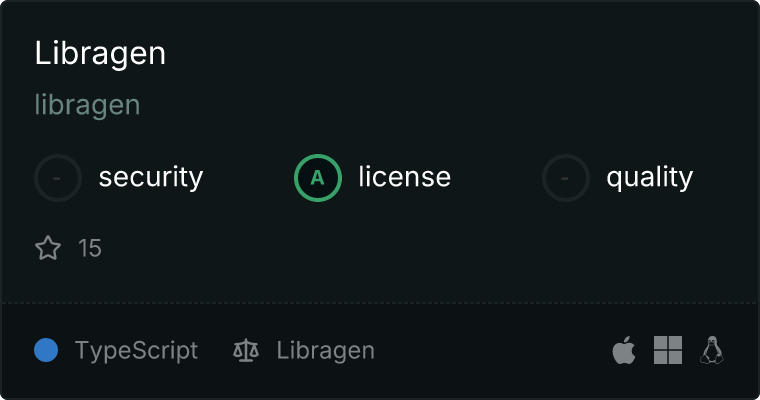 curl -X GET 'https://glama.ai/api/mcp/v1/servers/libragen/libragen'