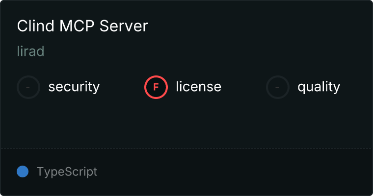 curl -X GET 'https://glama.ai/api/mcp/v1/servers/lirad/clind-mcp'