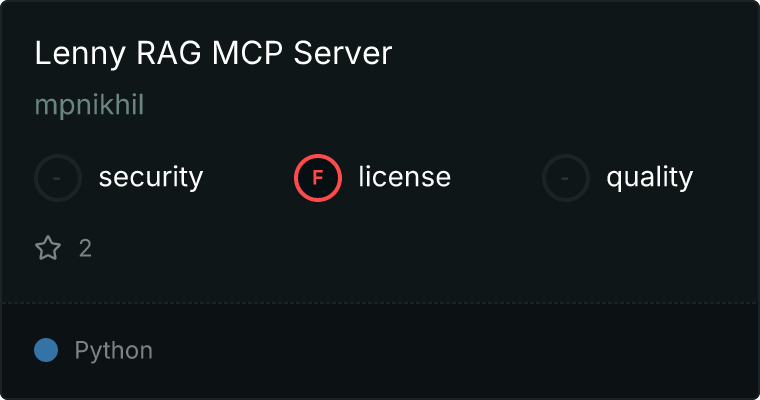 curl -X GET 'https://glama.ai/api/mcp/v1/servers/mpnikhil/lenny-rag-mcp'