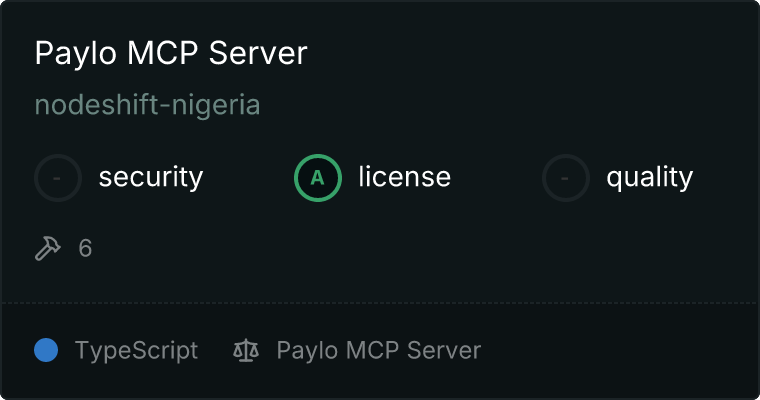 curl -X GET 'https://glama.ai/api/mcp/v1/servers/nodeshift-nigeria/paylo-mcp-server'