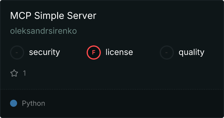 curl -X GET 'https://glama.ai/api/mcp/v1/servers/oleksandrsirenko/mcp-simple-server'