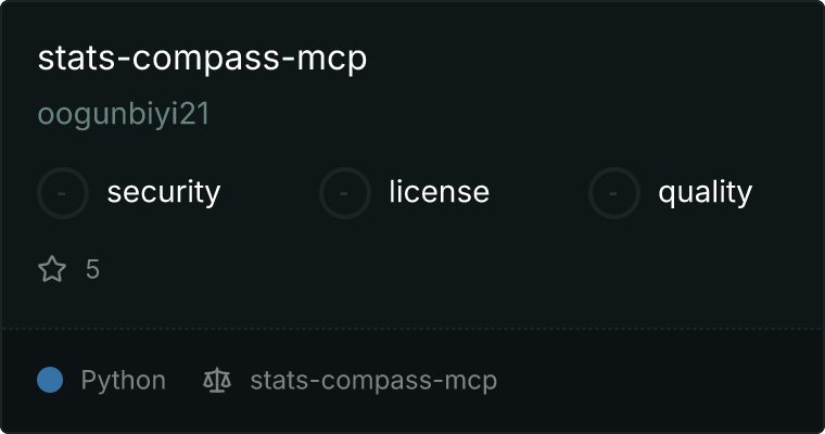 curl -X GET 'https://glama.ai/api/mcp/v1/servers/oogunbiyi21/stats-compass-mcp'