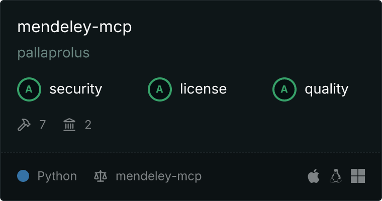 curl -X GET 'https://glama.ai/api/mcp/v1/servers/pallaprolus/mendeley-mcp'