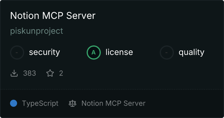 curl -X GET 'https://glama.ai/api/mcp/v1/servers/piskunproject/notion-mcp-server'