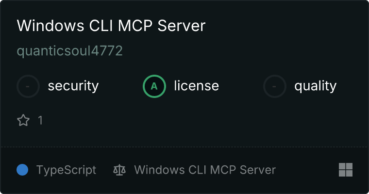 curl -X GET 'https://glama.ai/api/mcp/v1/servers/quanticsoul4772/mcp-server-win-cli'