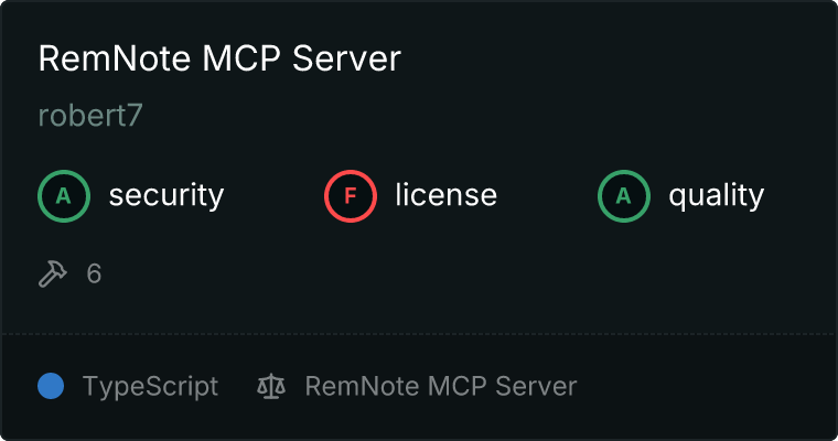 curl -X GET 'https://glama.ai/api/mcp/v1/servers/robert7/remnote-mcp-server'