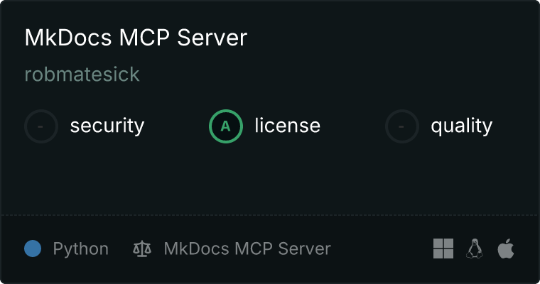curl -X GET 'https://glama.ai/api/mcp/v1/servers/robmatesick/mkdocs-mcp-example'