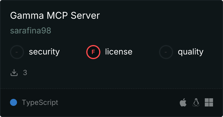 curl -X GET 'https://glama.ai/api/mcp/v1/servers/sarafina98/gamma-mcp-server'