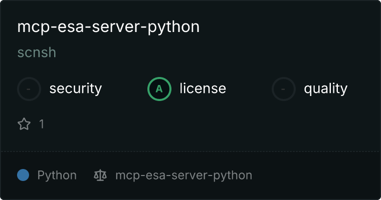 curl -X GET 'https://glama.ai/api/mcp/v1/servers/scnsh/mcp-esa-server-python'