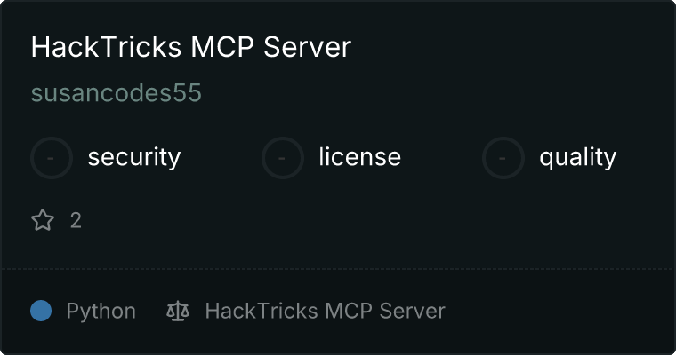curl -X GET 'https://glama.ai/api/mcp/v1/servers/susancodes55/hacktricks-mcp-server'