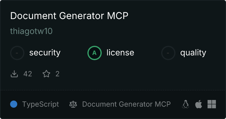 curl -X GET 'https://glama.ai/api/mcp/v1/servers/thiagotw10/document-generator-mcp'