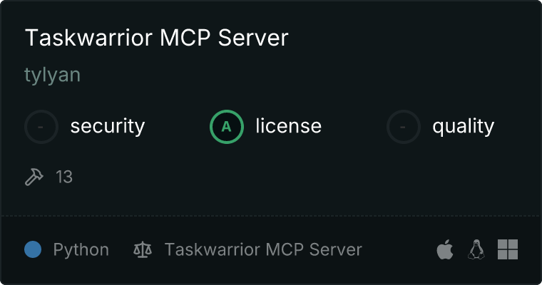 curl -X GET 'https://glama.ai/api/mcp/v1/servers/tylyan/taskwarrior-mcp'