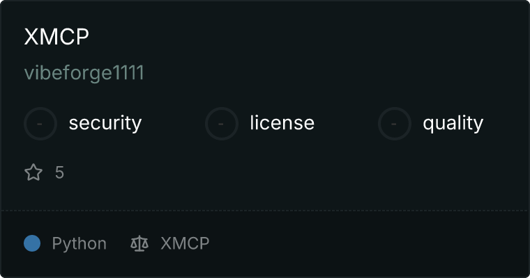 curl -X GET 'https://glama.ai/api/mcp/v1/servers/vibeforge1111/xmcp'
