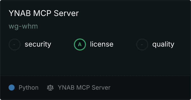 curl -X GET 'https://glama.ai/api/mcp/v1/servers/wg-whm/ynab-mcp-server'