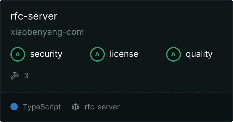 curl -X GET 'https://glama.ai/api/mcp/v1/servers/xiaobenyang-com/rfc-server'
