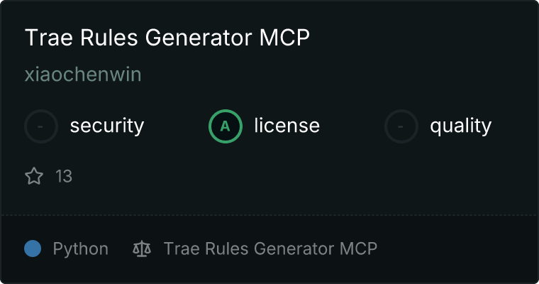 curl -X GET 'https://glama.ai/api/mcp/v1/servers/xiaochenwin/trae-rules-mcp'