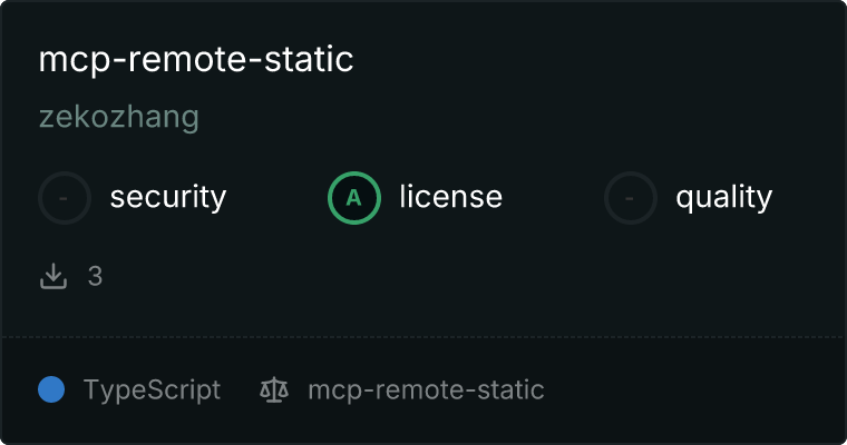 curl -X GET 'https://glama.ai/api/mcp/v1/servers/zekozhang/mcp-remote-static'