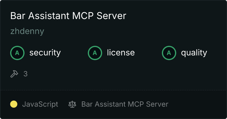curl -X GET 'https://glama.ai/api/mcp/v1/servers/zhdenny/bar-assistant-mcp-server'