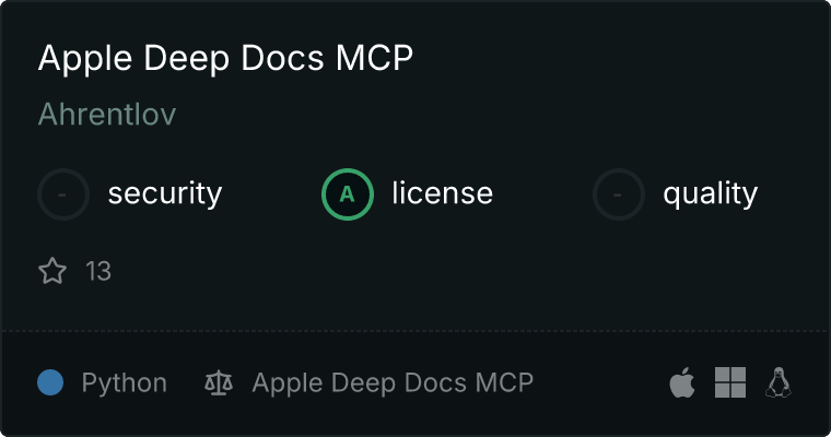 curl -X GET 'https://glama.ai/api/mcp/v1/servers/Ahrentlov/appledeepdoc-mcp'