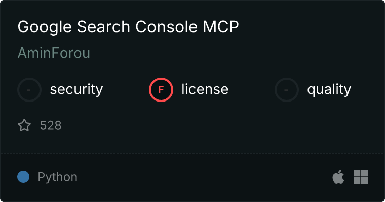 curl -X GET 'https://glama.ai/api/mcp/v1/servers/AminForou/mcp-gsc'