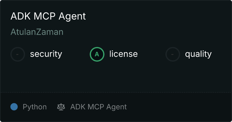 curl -X GET 'https://glama.ai/api/mcp/v1/servers/AtulanZaman/adk_mcp_gmap'