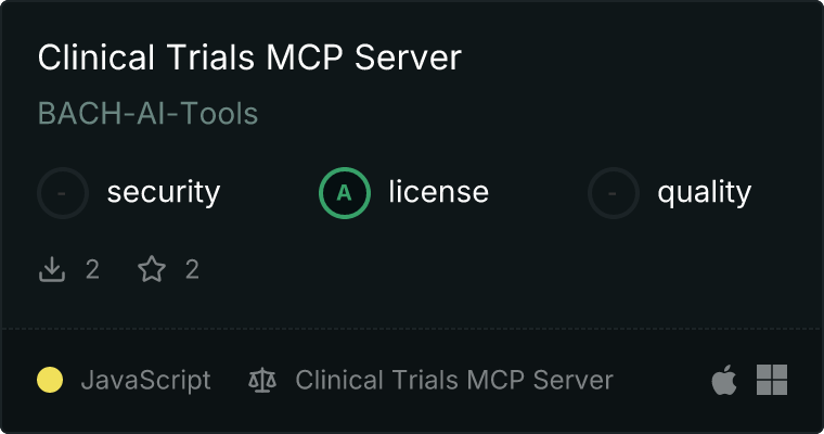 curl -X GET 'https://glama.ai/api/mcp/v1/servers/BACH-AI-Tools/ClinicalTrials-MCP-Server'