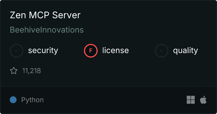 curl -X GET 'https://glama.ai/api/mcp/v1/servers/BeehiveInnovations/zen-mcp-server'
