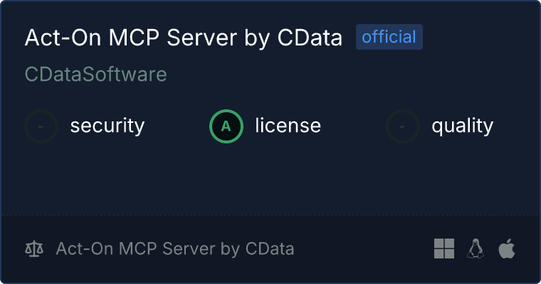 curl -X GET 'https://glama.ai/api/mcp/v1/servers/CDataSoftware/act-on-mcp-server-by-cdata'