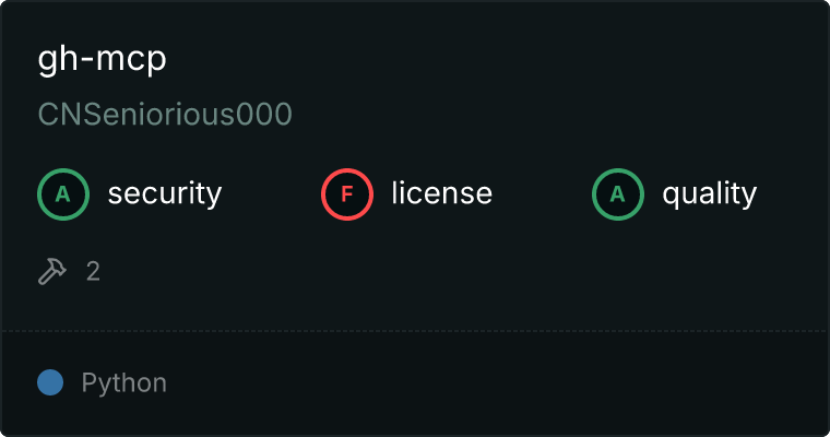 curl -X GET 'https://glama.ai/api/mcp/v1/servers/CNSeniorious000/gh-mcp'